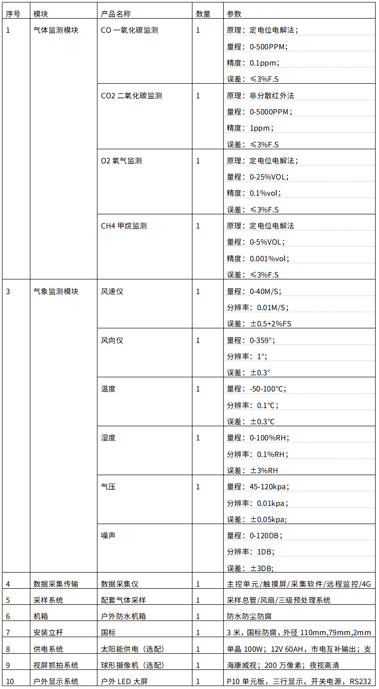 在指定地点连续实时监测环境空气中的CO/CO2/CH4/O2等各项污染物浓度,以及风速、风向、温度、相对湿度、大气压等,并可与当地环保局联网监测。可实时监测城市化工厂 石油石化,医药厂等地引发温室气体及有害物质,并向管理进行传送。